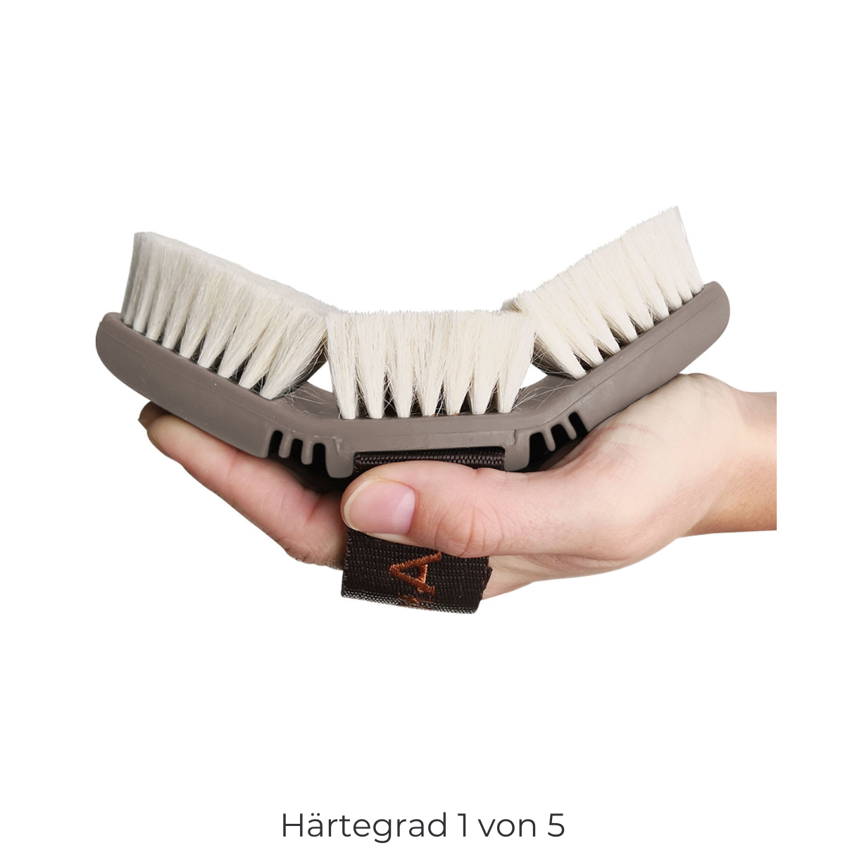 Pferde lieben die Flexibilität von der CareFlex Wurzelbürste, da die sich perfekt an die Körperkontur des Pferdes anschmiegt und somit sehr angenehm auch an empfindlichen Stellen für dein Pferd ist.